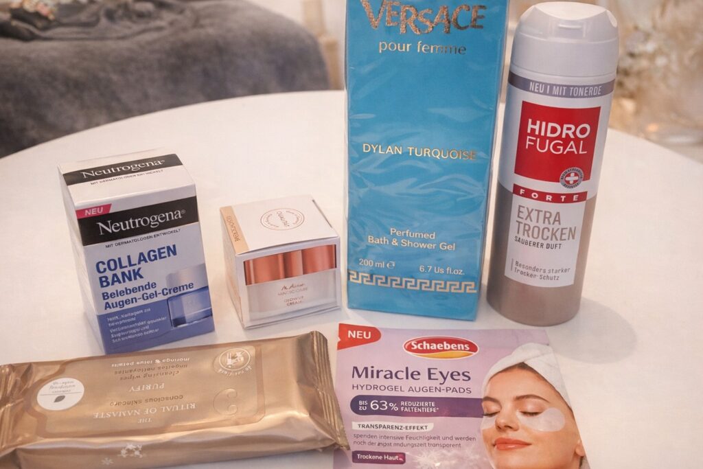 In meiner aktuellen Box waren dieses Mal unter anderem ein Versace Duschgel und ein Hidrofugal Deo enthalten – und ich muss sagen: beides ist ein echtes Highlight. Das Versace Duschgel riecht nicht nur beim Duschen gut, sondern auch auf der Haut danach noch angenehm – typisch Versace: ein bisschen „all over“, aber in richtig gut. Und auch das Hidrofugal Deo hat mich überrascht: Es riecht frisch und sauber, ohne aufdringlich zu sein – und ist einfach ein Produkt, das man im Alltag wirklich nutzt.