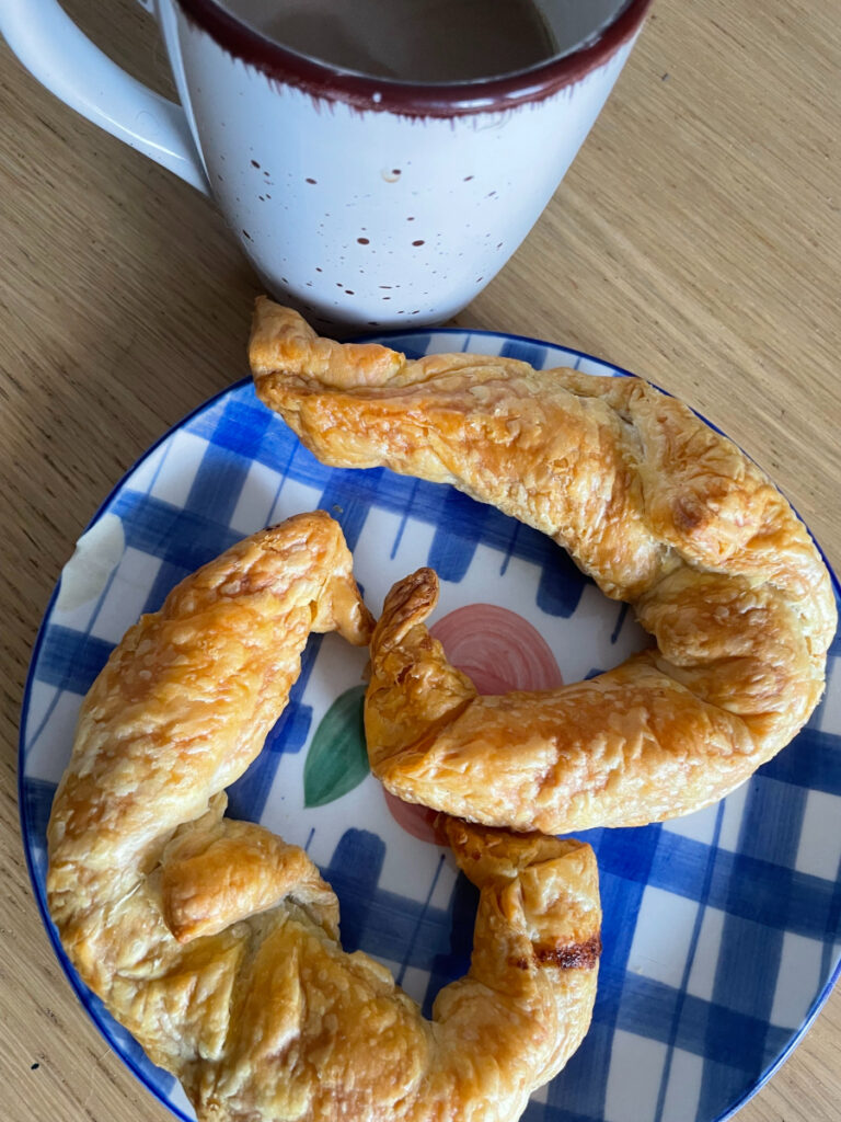 Optisch eher rustikal, geschmacklich aber richtig gut. Knuspriger Blätterteig, intensive Pistazienfüllung – perfekt zu Kaffee.