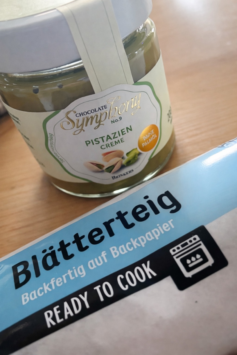 Optisch eher rustikal, geschmacklich aber richtig gut. Knuspriger Blätterteig, intensive Pistazienfüllung – perfekt zu Kaffee.