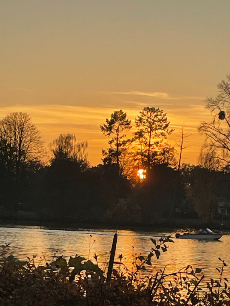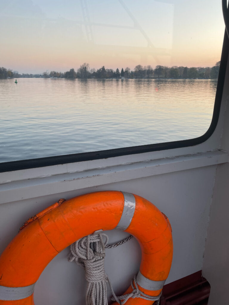 Dieses langsame Übers-Wasser-Gleiten hat so etwas Beruhigendes. Man schaut aufs Ufer, auf die Bäume, auf die Boote – und während man sitzt, passiert im Kopf das Gegenteil von Stress: es wird stiller.