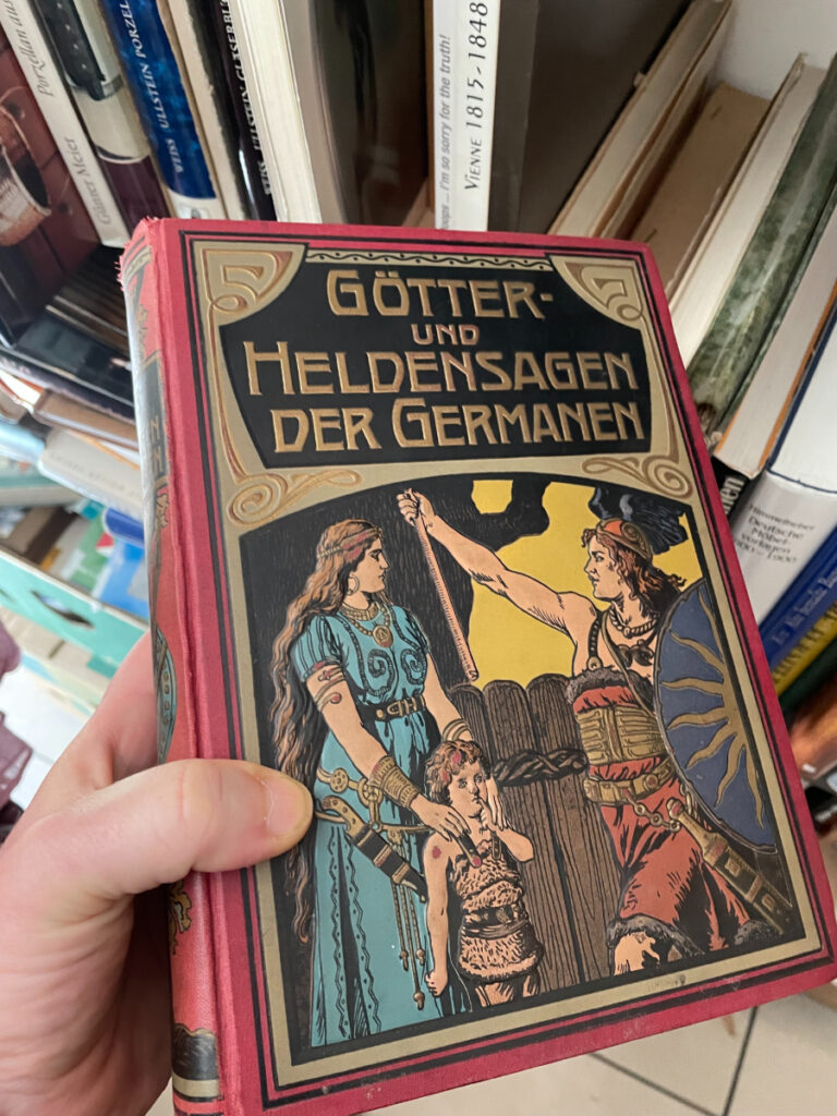 Zwischen alten Radios, Bildbänden und vergriffenen Romanen kann man hier auch einfach sitzen, Kaffee trinken und in vergilbten Seiten stöbern. Ich habe dort einmal eine Ausgabe der „Götter- und Heldensagen der Germanen“ gefunden – ein echtes Fundstück. Solche Momente kann man nicht planen, sie passieren einfach.