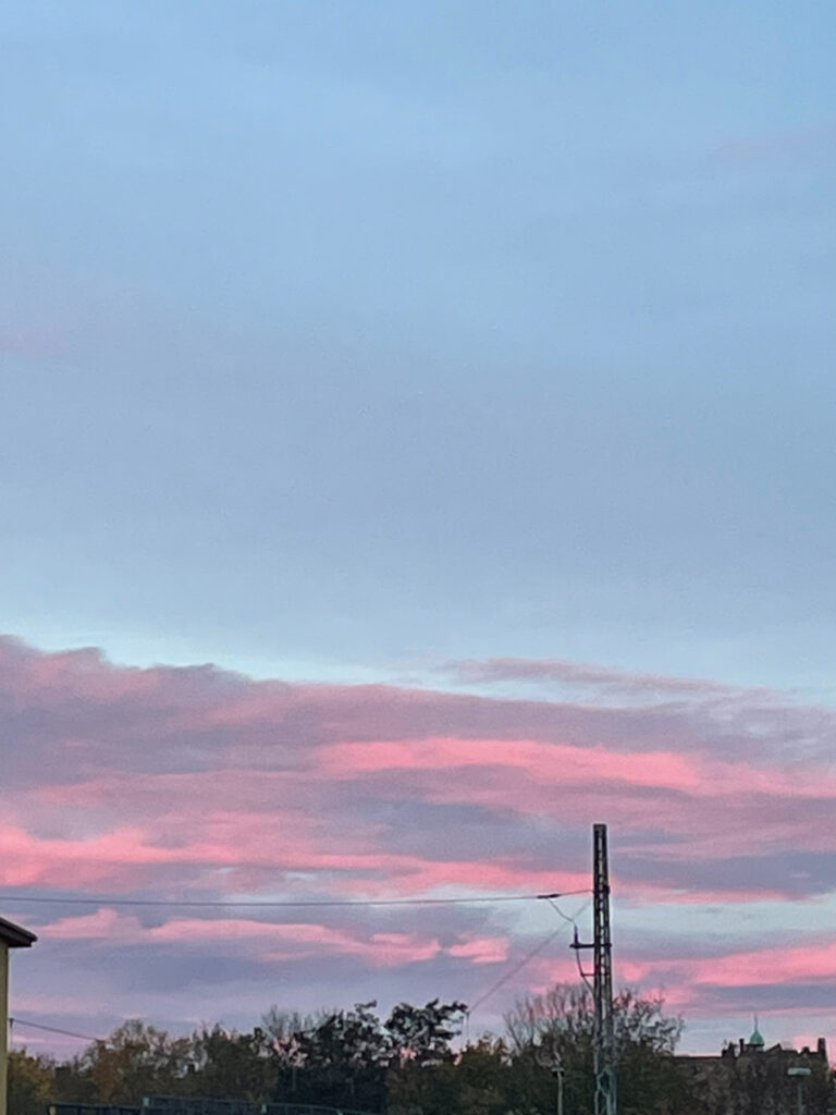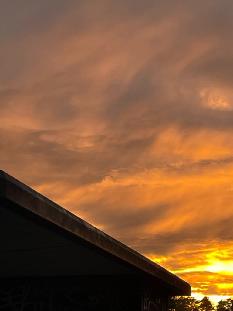 Am Abend färbt sich der Himmel wie ein Gemälde: Kupfer, Gold, ein Hauch von Rosa. Ich bleibe kurz stehen, mitten auf dem Weg nach Hause, und sehe zu, wie die Wolken glühen. Für einen Moment ist alles ruhig – selbst die Stadt scheint den Atem anzuhalten.