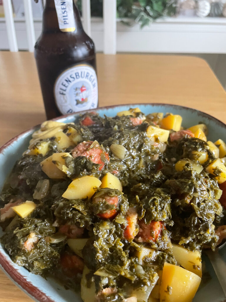 Am Abend dann: warmes Licht, ein Teller voller Herbst. Kartoffeln, Grünkohl, Rauchwurst – einfache Dinge, ehrlich und gut. Draußen Dunkelheit, drinnen Wärme.