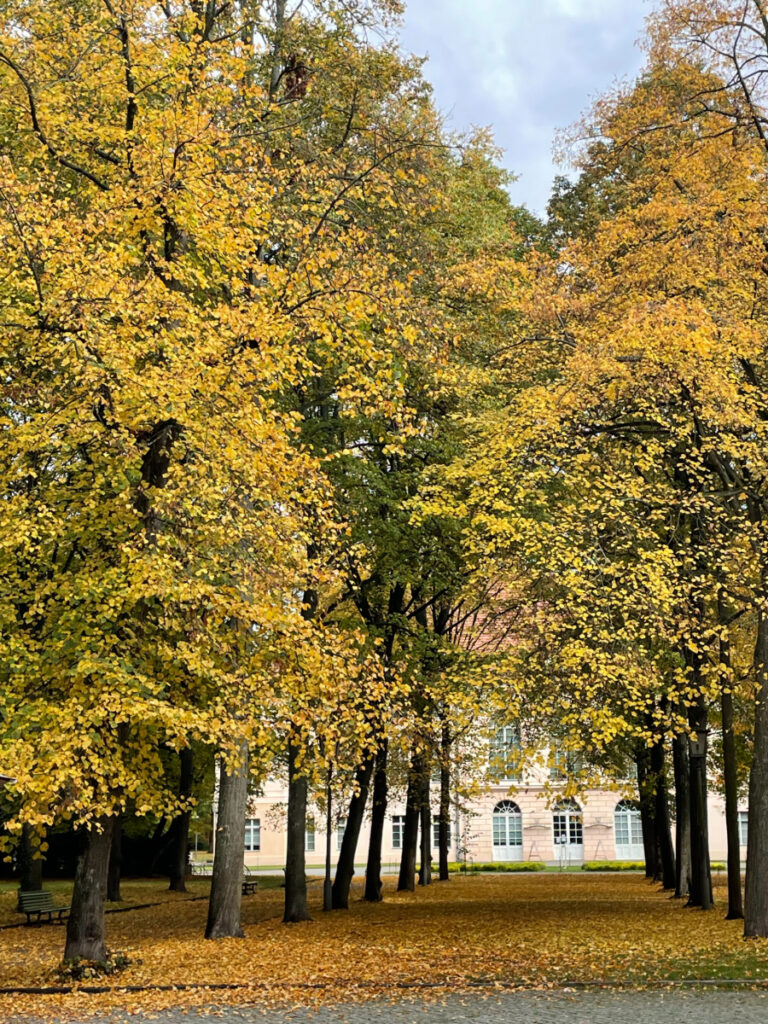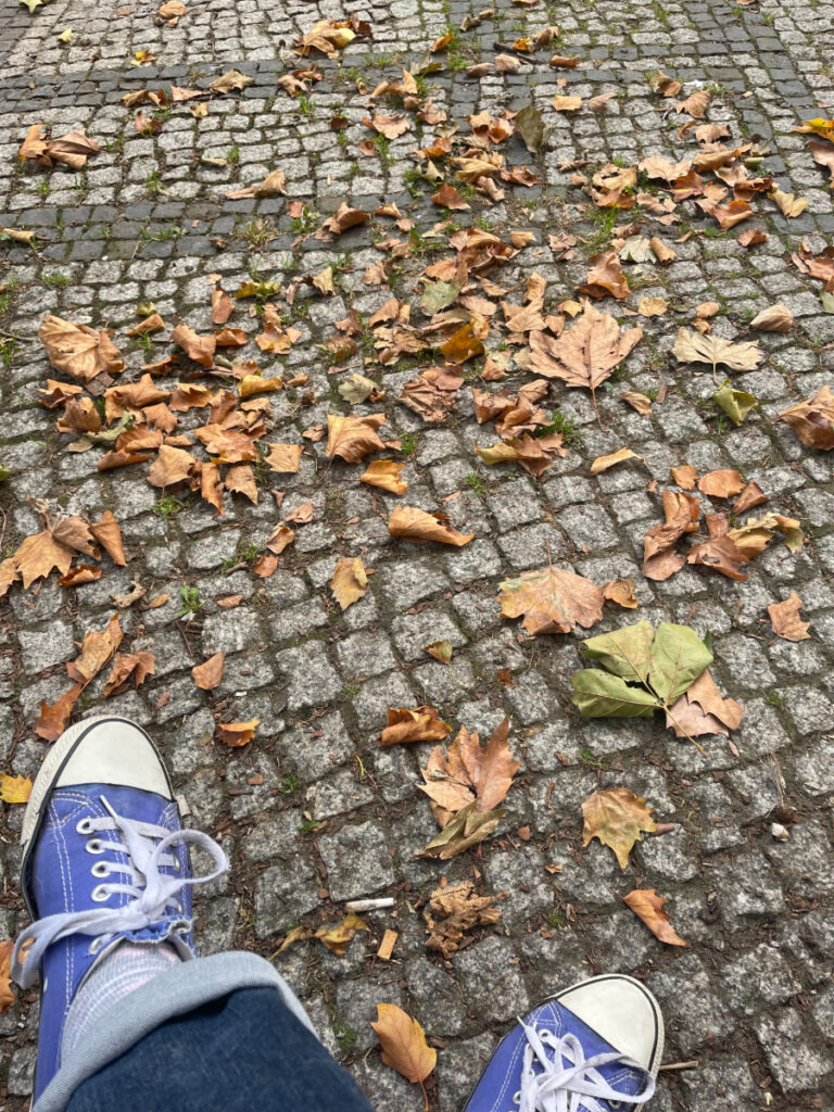 Am nächsten Morgen dann: Kopfsteinpflaster, nasse Blätter, kalte Finger. Ich laufe durch Straßen, in denen der Herbst bereits seine Spuren hinterlassen hat. Die Bäume leuchten in Gelb und Rot, als wollten sie ein letztes Mal alles zeigen, was in ihnen steckt.